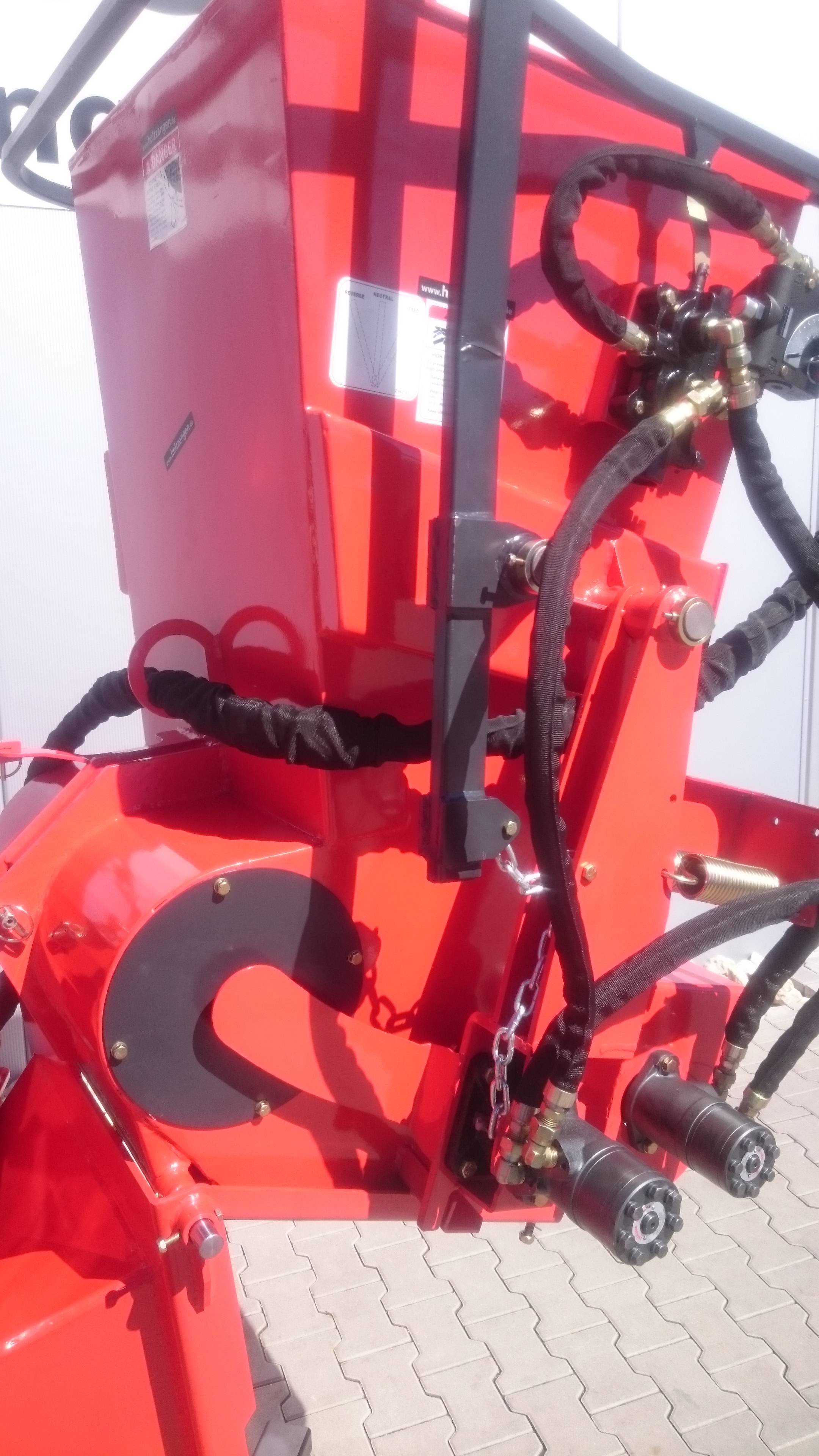 Der Holzhäcksler wird mit Zapfwelle angetrieben, mit Hilfe der Traktorhydraulik wird das Holz in den Häcksler eingezogen und mit den zwei gegenläufigen Stachelwalzen wird das Holz in den Trichter gezogen. Die Einzugs Geschwindigkeit kann stufenlos eingestellt werden, so das die Schredderleistung immer optimal ist, und mit den Großen Sicherheitsbügel kann die Richtung des Einzugs gesteuert werden, STOPP-VOR-ZURÜCK Der Rotor ist mit Messern aus gehärteten Werkzeugstahl ausgestattet. Holzstücke Durchmesser werden in 0,4-40 mm Stücke gehäckselt. Der Auswurftrichter kann 360 Grad gedreht werden und hat einen Auswurf bis zu 10 Metern. Zum Transportieren kann der Trichter nach oben geklappt werden und wird mit 2 Hilfs-Stoßdämpfern mit angehoben. Mit nur einer Schraube kommt man an den Rotor und die Messer, so das Wartungsarbeiten leicht durchgeführt werden können. Inkl. Zapfwelle und in der Farbe Rot erhältlich. Die Häcksler können kleine Lackschäden aufweisen!
